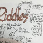 When handwriting the page content, Bob has also added humour in both the written and illustrative form with title characters complaining about the quality of the riddles, skiers testing their luck down a steep slope and a rhinoceros greeting passengers as it passes at 60 km an hour.